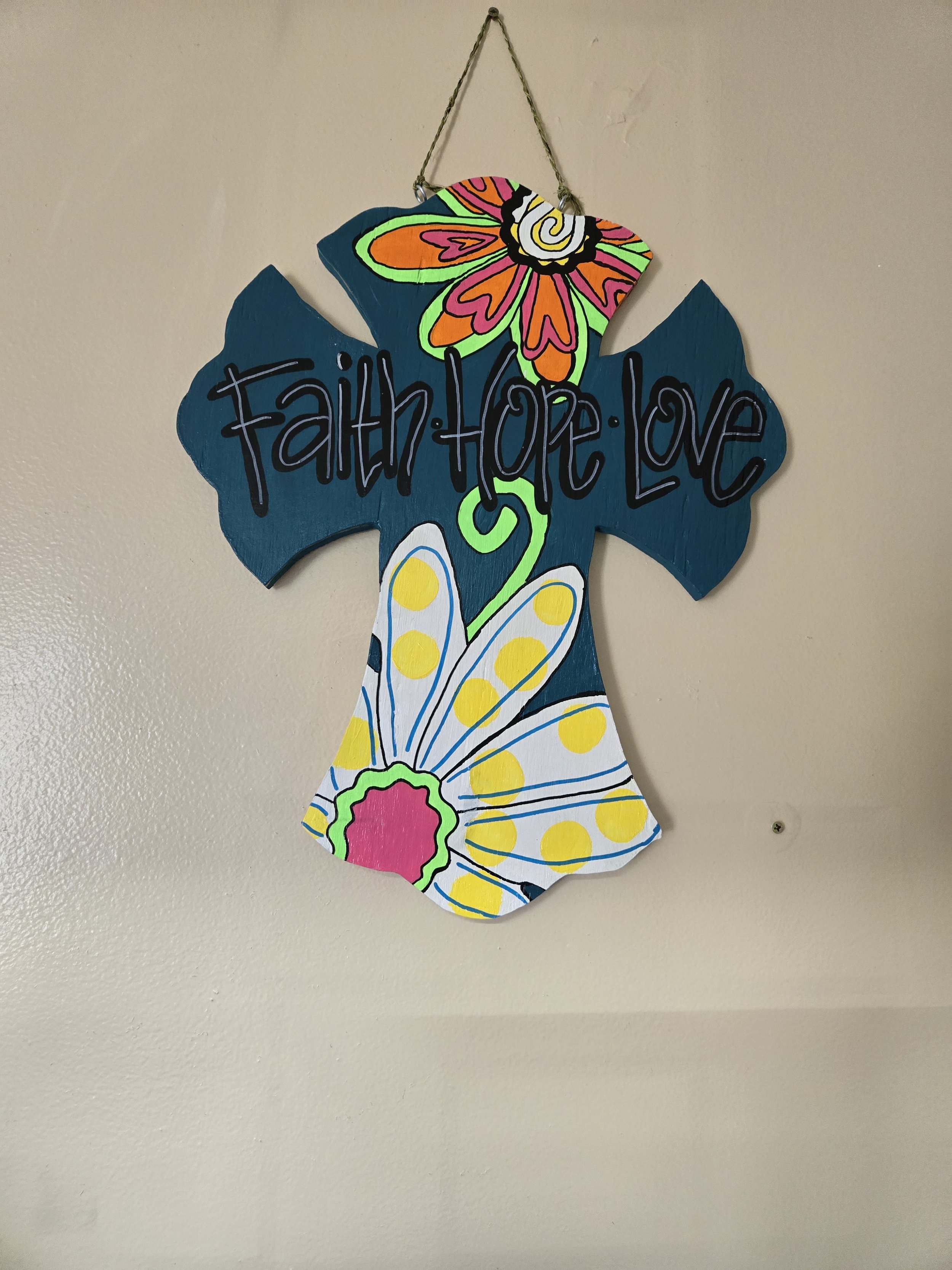 Add a warm, welcoming touch to your home with this handmade wooden teal cross door hanger, perfect for decorating your front door, porch, entryway, or indoor space. Each piece created by Rhonda's Creations is carefully crafted and finished to create a charming accent that fits a variety of home décor styles.